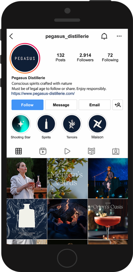 Since the beginning of 2024, we have been supporting the growth of the luxury spirits brand Pegasus Distillerie alongside numerous talents. Our missions have included: update of the brand design system (including: color palette, typography, layout system), new signature editorial formats and campaign/advertising concepts (art direction + graphic design).